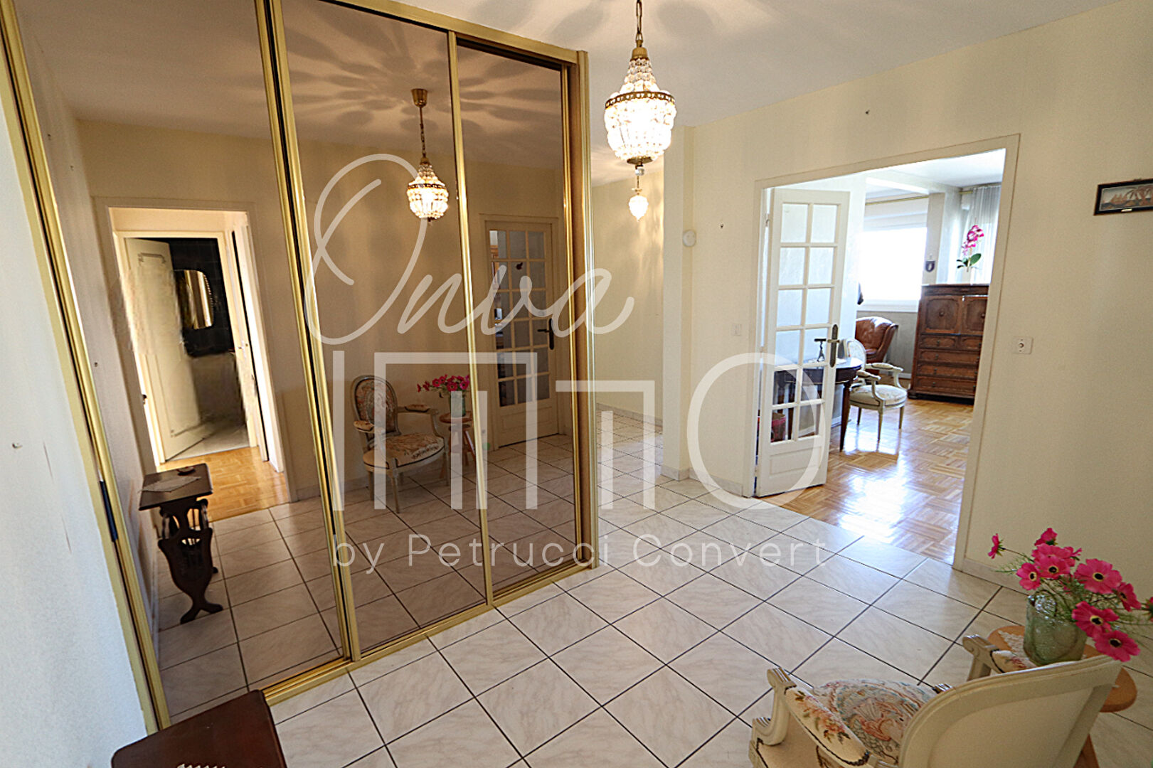 Lumineux appartement traversant E / O en étage élevé avec ascenseur, doté d’un linéaire de fenêtres inondant l’espace de lumière et offrant une très belle vue sur les Monts du Lyonnais et Fourvière, dans une copropriété arborée et sécurisée.