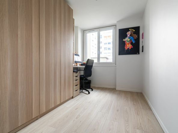 – deux chambres de 9m² et 12m² au calme complet sur intérieur de copropriété et dotées toutes deux de rangements intégrés.