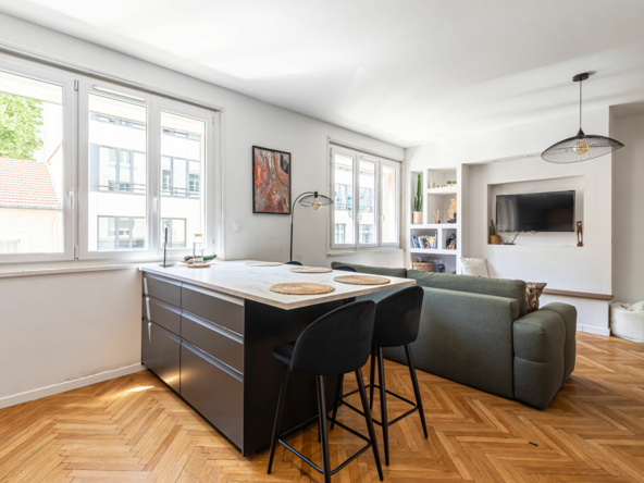 Idéalement situé rue Vendôme dans une petite copropriété, T3 traversant Est / Ouest de 66m² entièrement rénové et parfaitement agencé avec :