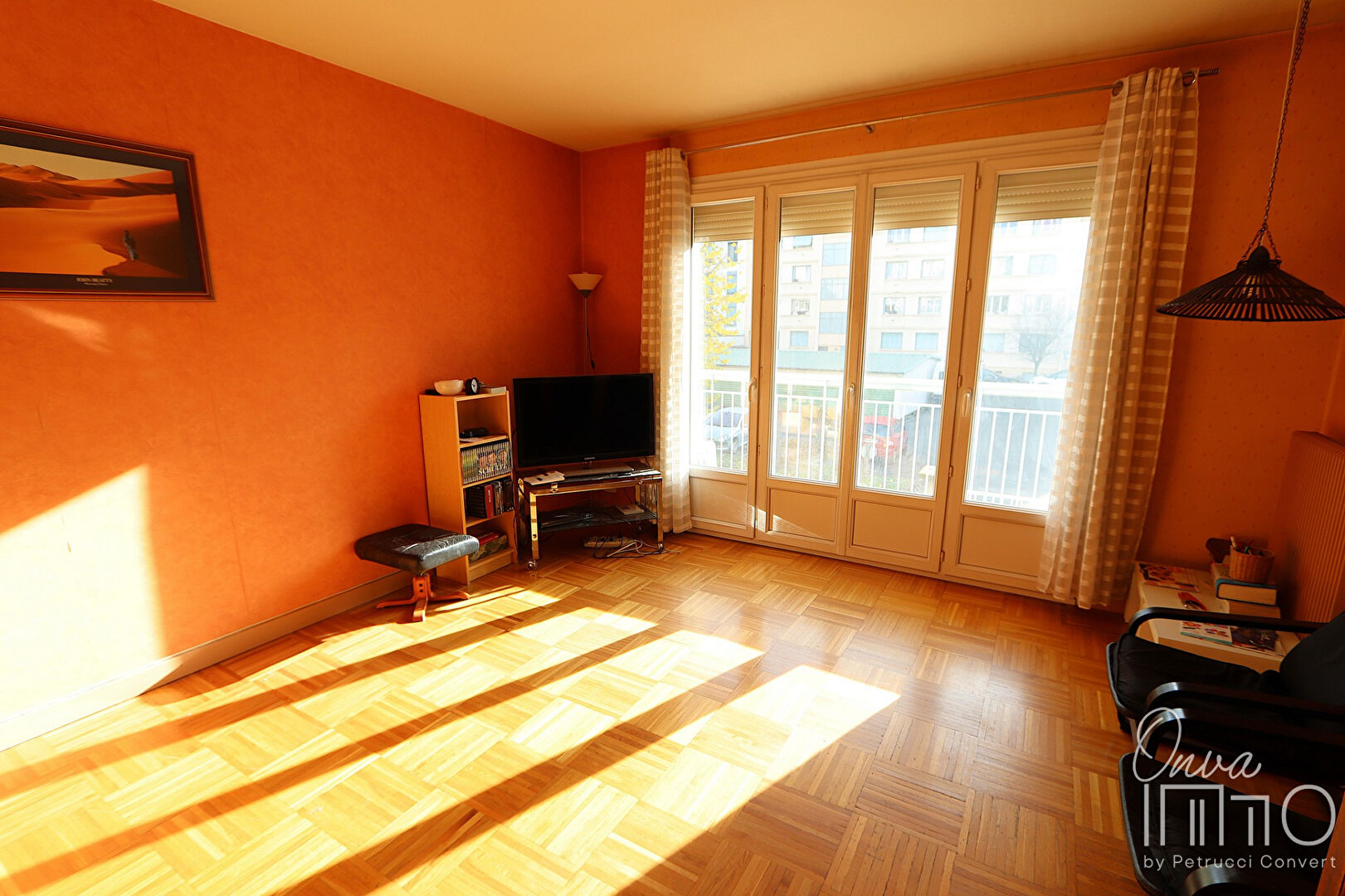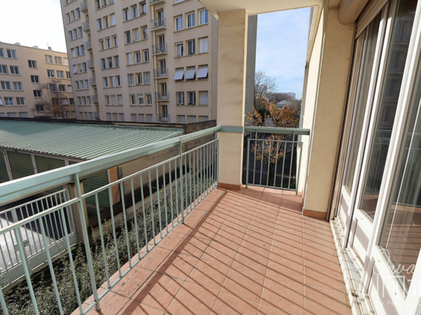 – séjour avec parquet chêne donnant accès à un premier balcon de 5,5m².