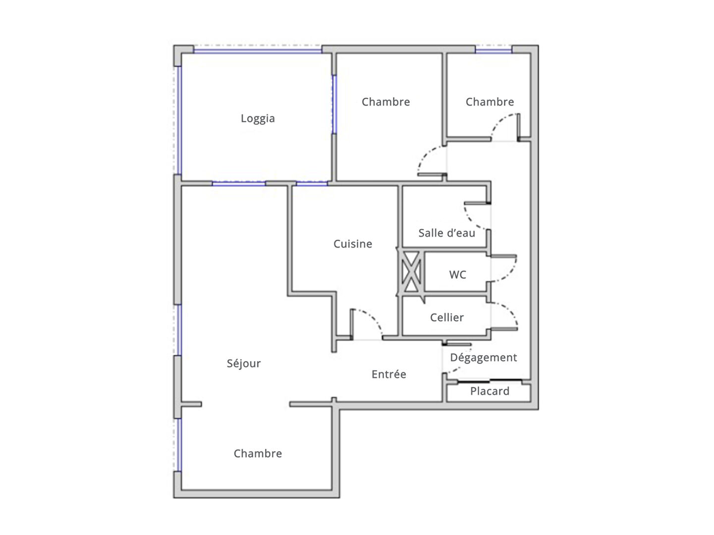 – Deux chambres dont une avec accès direct sur la loggia (possibilité 3ème chambre dans le séjour double).